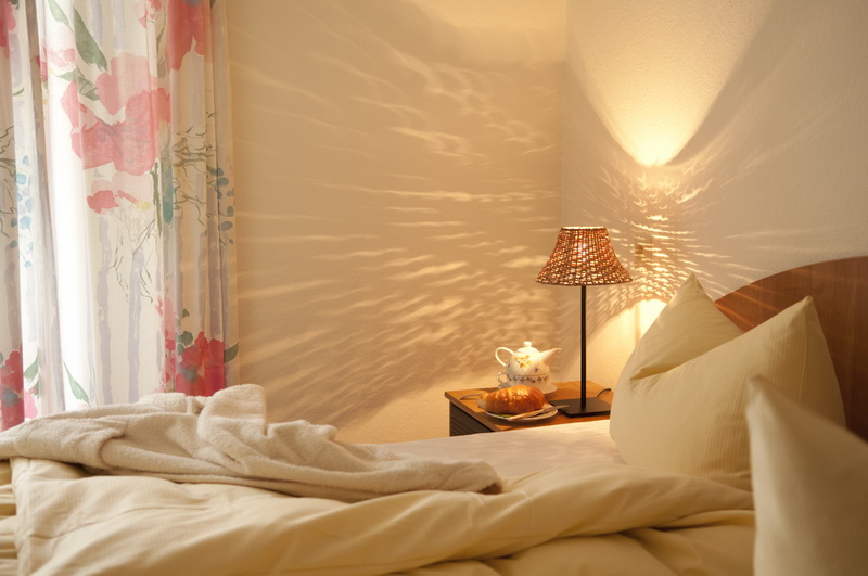 Im Zimmer Gemütlichkeit, vor dem Balkon der Hegau und der Bodensee in der Morgensonne. Das ideale Zimmer für all jene, die den Beginn des Tages kaum erwarten können!