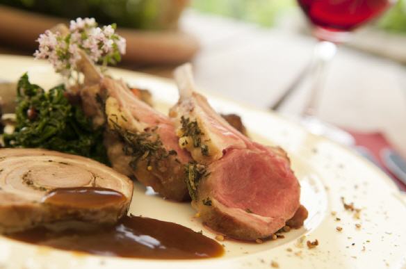 - Geschmorte Keule vom Hohentwieler Lamm in eigener Sauce, dazu Ratatouillegemüse und pommes gratins