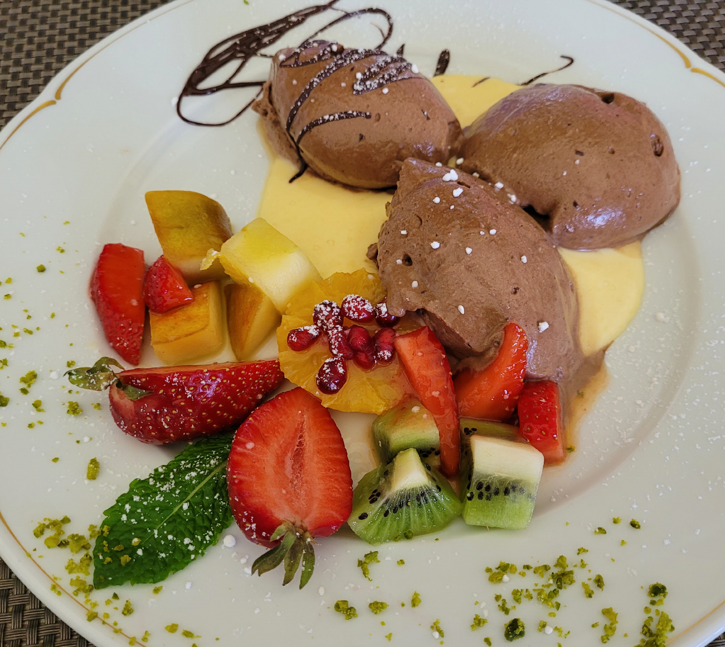 - Mousse au chocolat mit Vanillesauce 11,00 EUR
