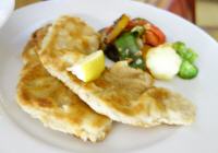 Kalbsschnitzel paniert mit feinem Gemüse und Pomme
